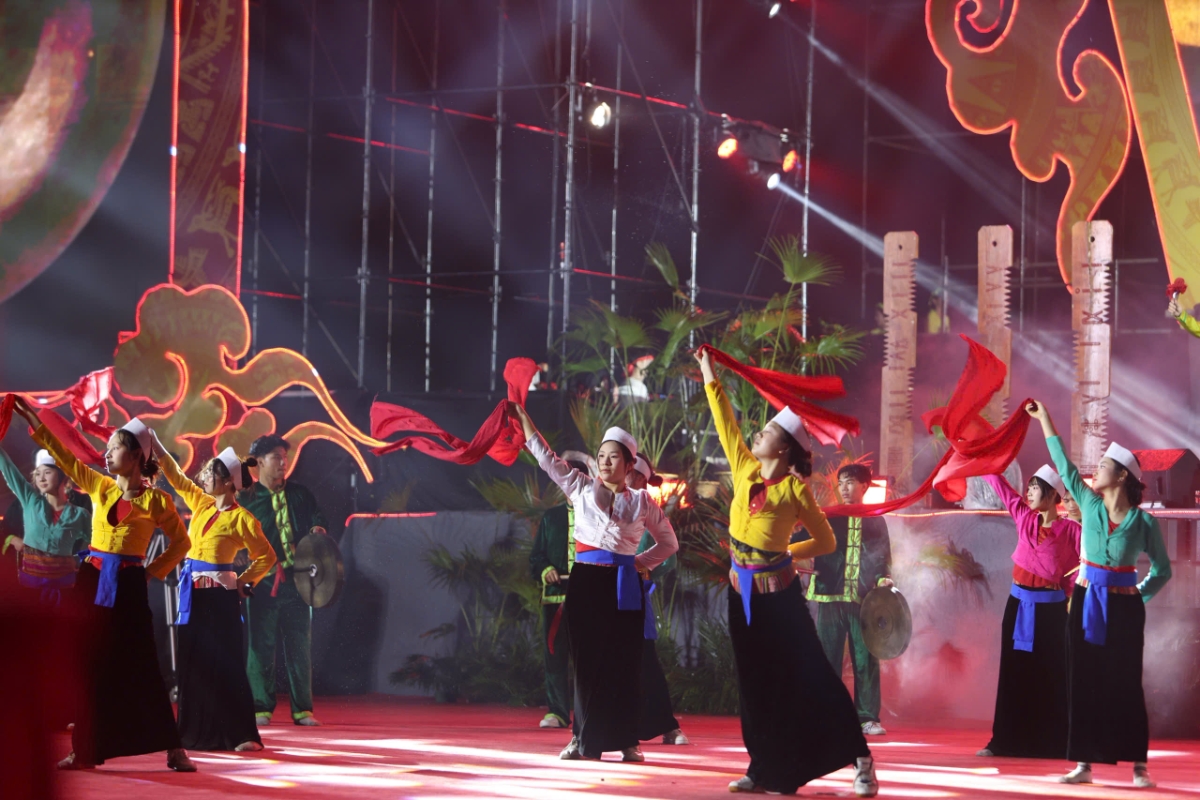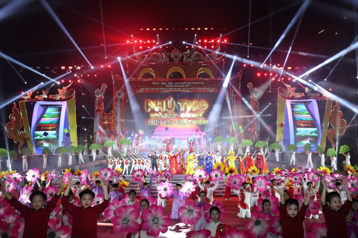 Điểm nhấn của đêm khai mạc là chương trình nghệ thuật đặc biệt “Linh thiêng nguồn cội – Đất Tổ Hùng Vương”, được dàn dựng công phu với ba chương: “Linh thiêng nguồn cội”, “Về miền di sản” và “Phú Thọ vươn mình cùng đất nước”.
